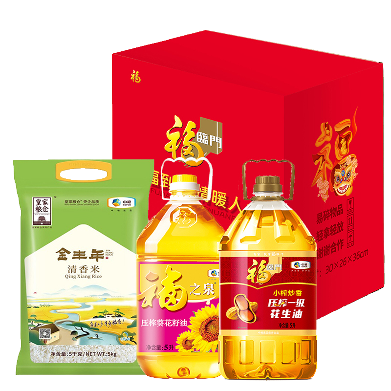 中粮皇家粮仓金丰年清香米5kg 中粮福之泉压榨葵花籽油5L 中粮福临门花生油5L