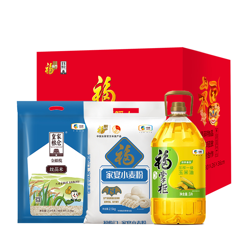中粮皇家粮仓金橄榄丝苗米2.5kg 中粮福临门家宴小麦粉2.5kg 中粮福掌柜压榨一级玉米油5L