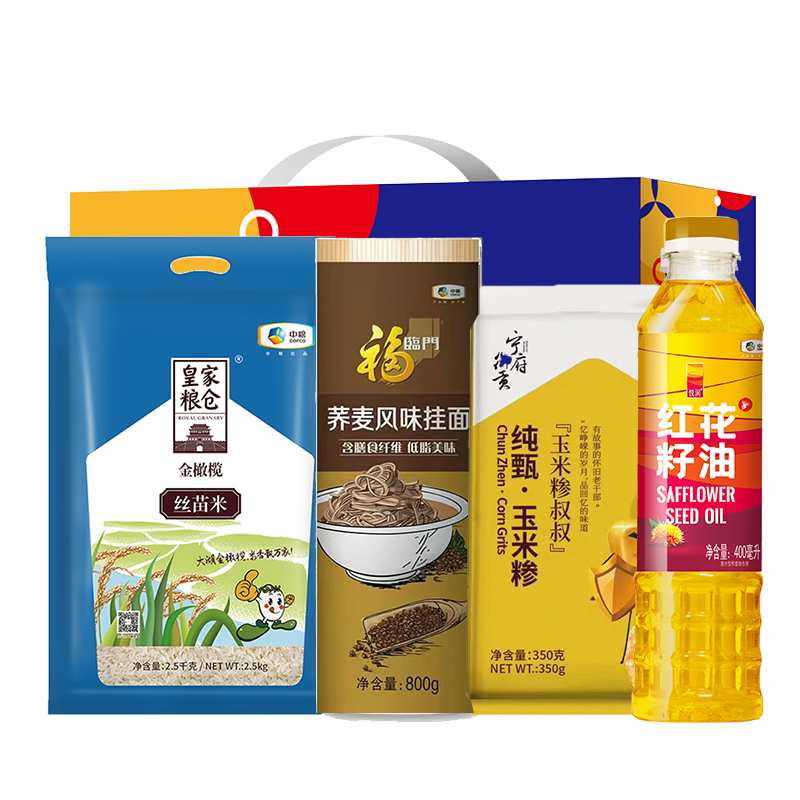 中粮皇家粮仓丝苗米2.5kg 中粮香雪荞麦风味挂面800g 中粮纯甄玉米糁350g 中粮悦润红花籽油400ml