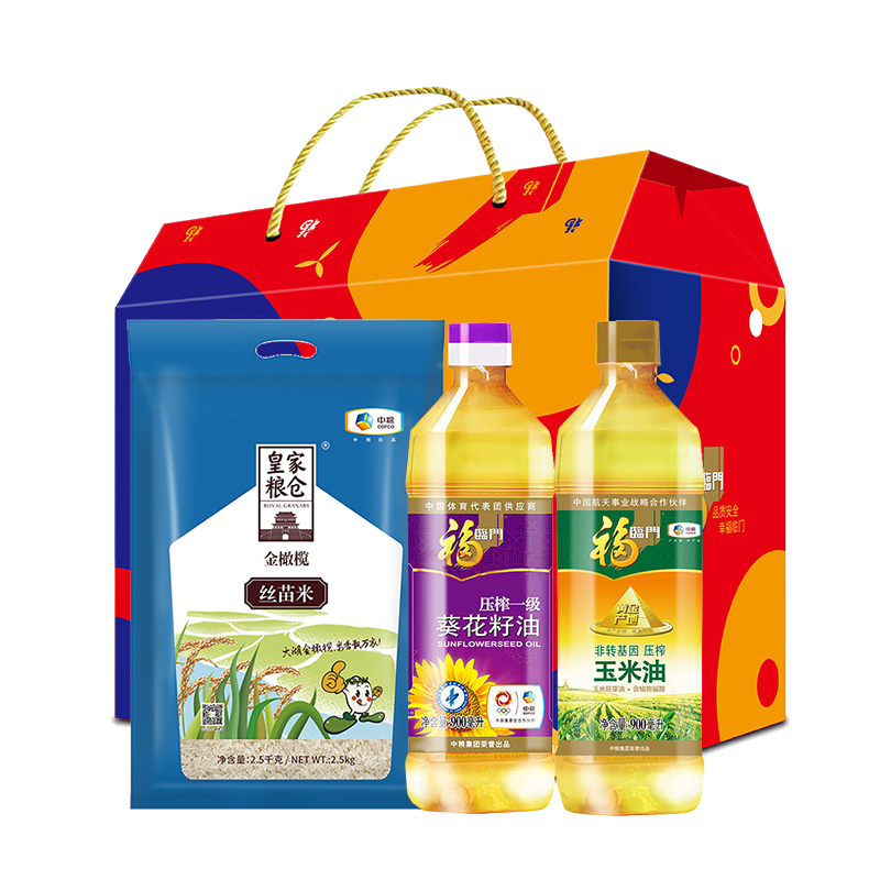 中粮皇家粮仓丝苗米2.5kg 中粮福临门非转基因压榨玉米油900ml 中粮福临门压榨一级葵花籽油900ml