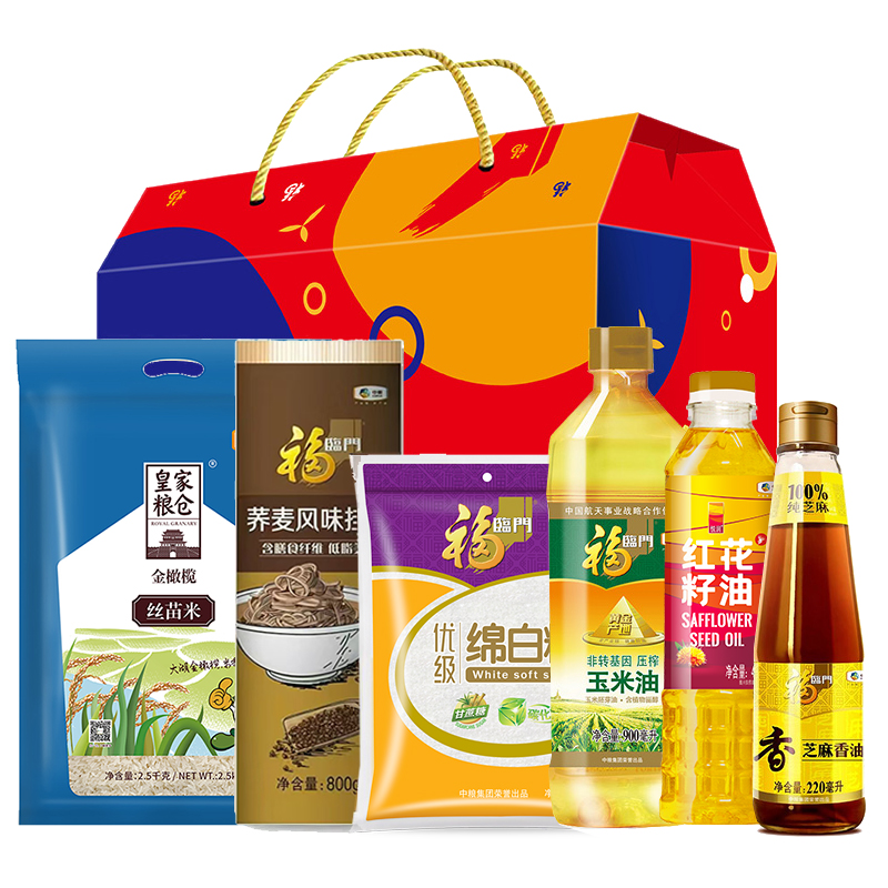 中粮皇家粮仓丝苗米2.5kg 中粮香雪荞麦风味挂面800g 中粮福临门优级绵白糖405g 中粮福临门非转基因压榨玉米油900ml 中粮悦润红花籽油400ml 中粮福临门100%纯芝麻香油220ml