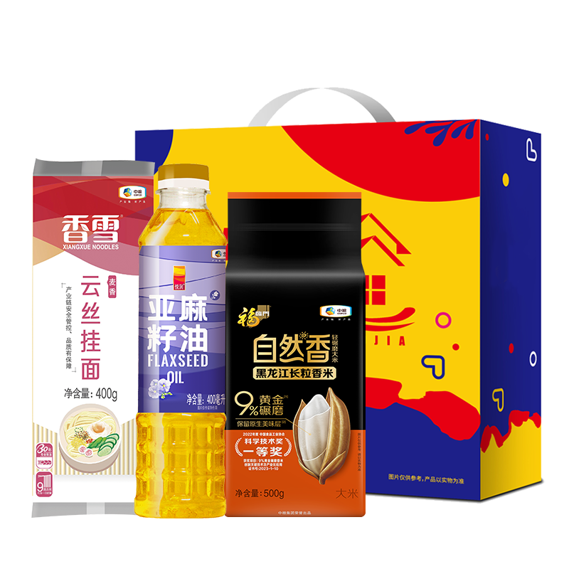 中粮甄选优质大米500g 中粮香雪云丝挂面400g 中粮悦润亚麻籽油400ml