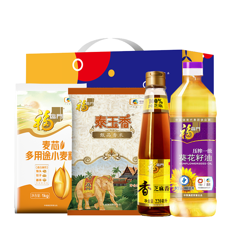 中粮福临门泰玉香甄品香米1kg 中粮福临门葵花籽油900ml 中粮福临门100%纯芝麻香油220ml 中粮福临门多用途小麦粉1000g