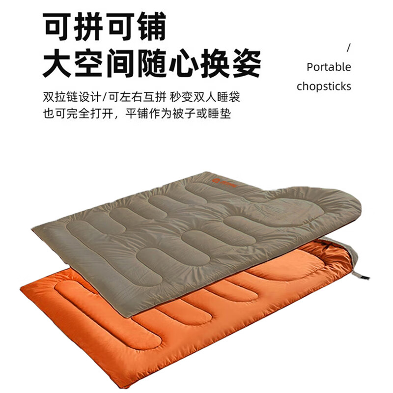 材质 面料190T涤丝纺,防水布料, 里料190丅春亚纺,250g中空棉填充 颜色 面料,卡其色;里料,橙色 尺寸 210*75cm 重量 1.3kG 温度 5℃