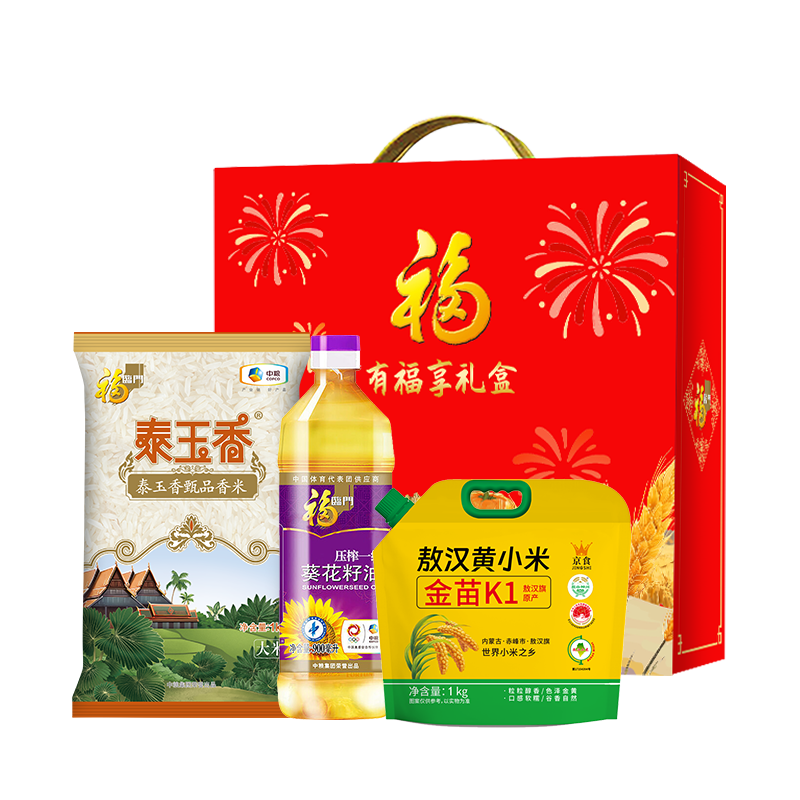 中粮福临门泰玉香甄品香米1kg 中粮·福临门葵花籽油900ml 京食金苗K1黄小米1kg