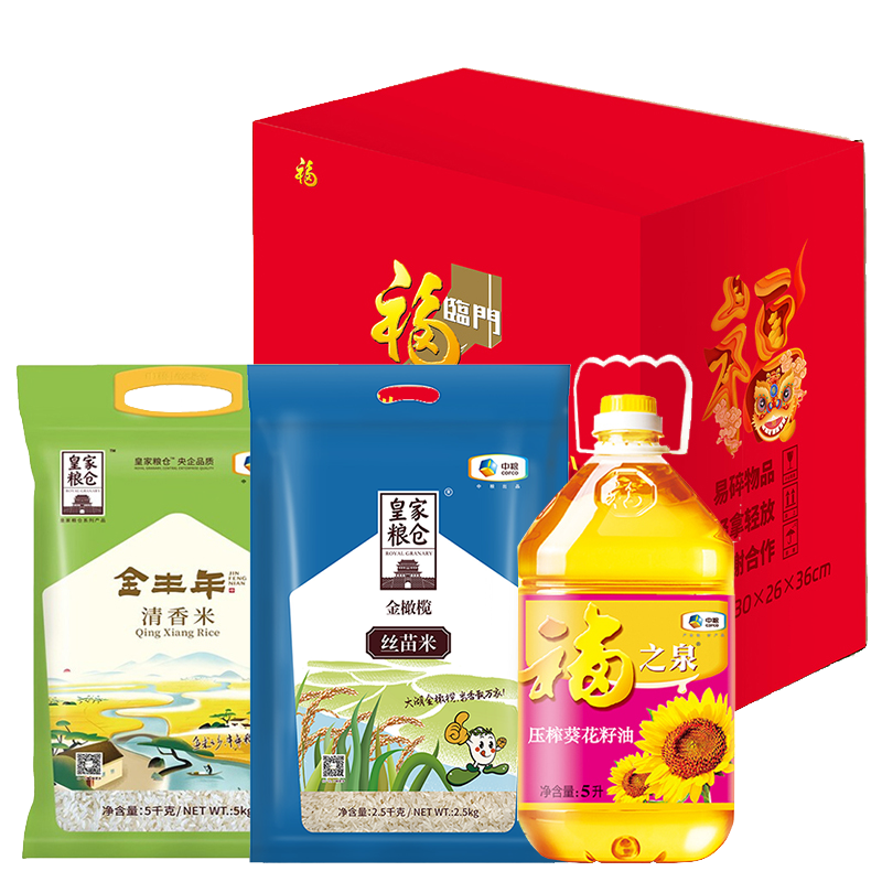 中粮皇家粮仓金丰年清香米5kg 中粮皇家粮仓金橄榄丝苗米2.5kg 中粮福之泉压榨葵花籽油5L