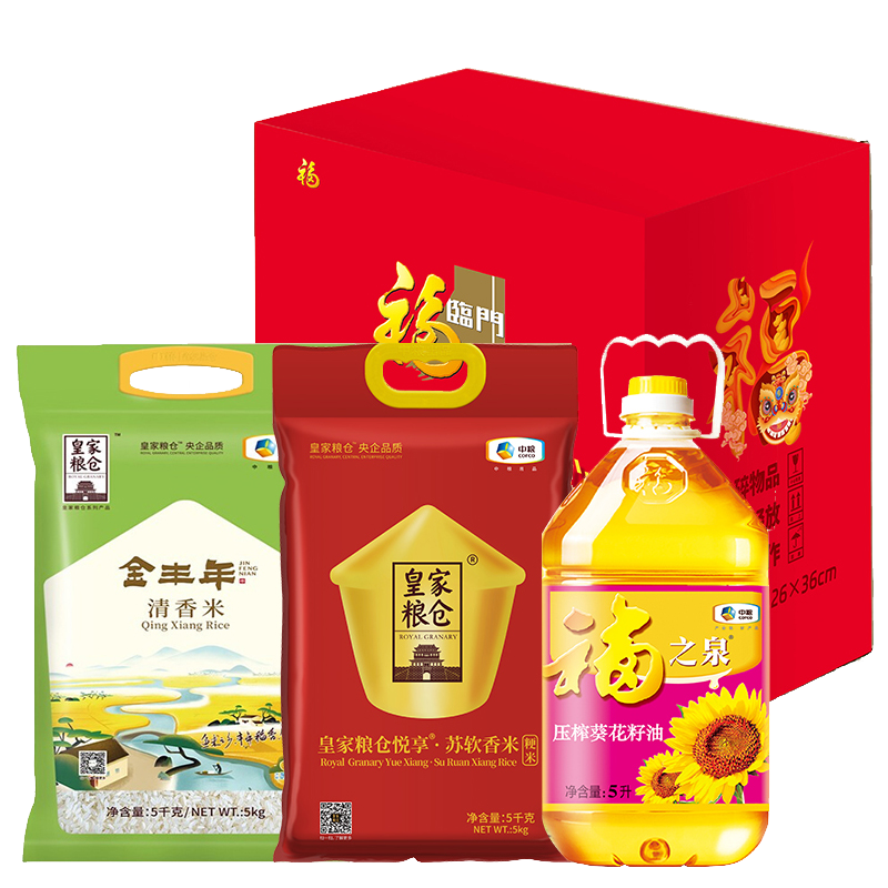 中粮皇家粮仓金丰年清香米5kg 中粮皇家粮仓金悦享苏软香米5kg 中粮福之泉压榨葵花籽油5L