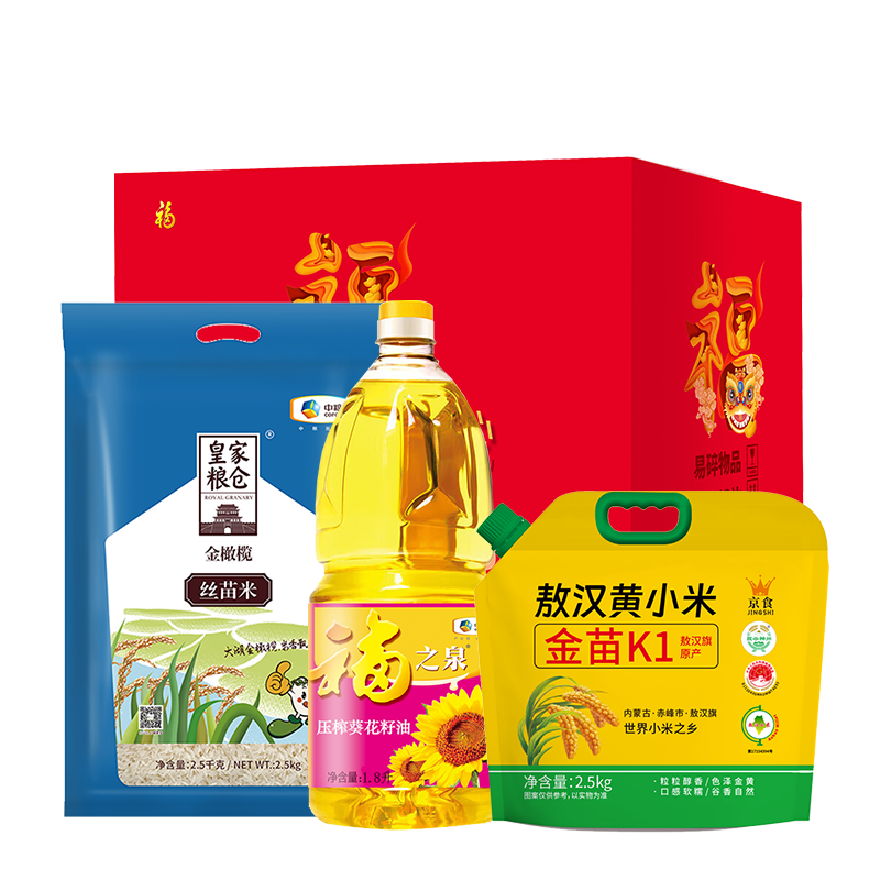 京食金苗K1黄小米2.5kg 中粮皇家粮仓金橄榄丝苗米2.5kg 中粮福之泉葵花籽油1.8L