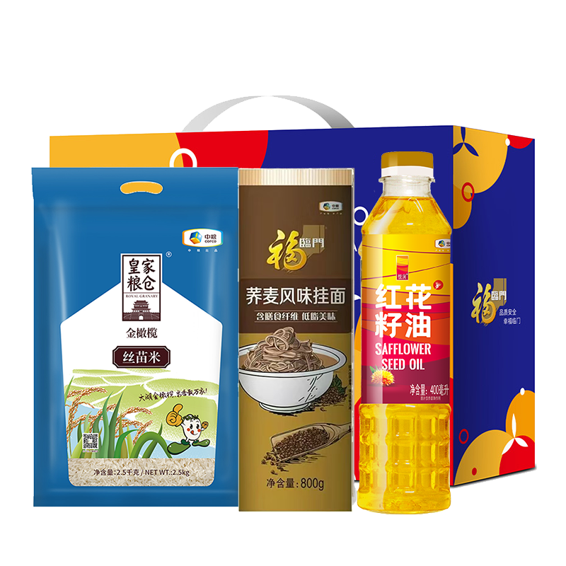 中粮皇家粮仓丝苗米2.5kg 中粮香雪荞麦风味挂面800g 中粮悦润红花籽油400ml
