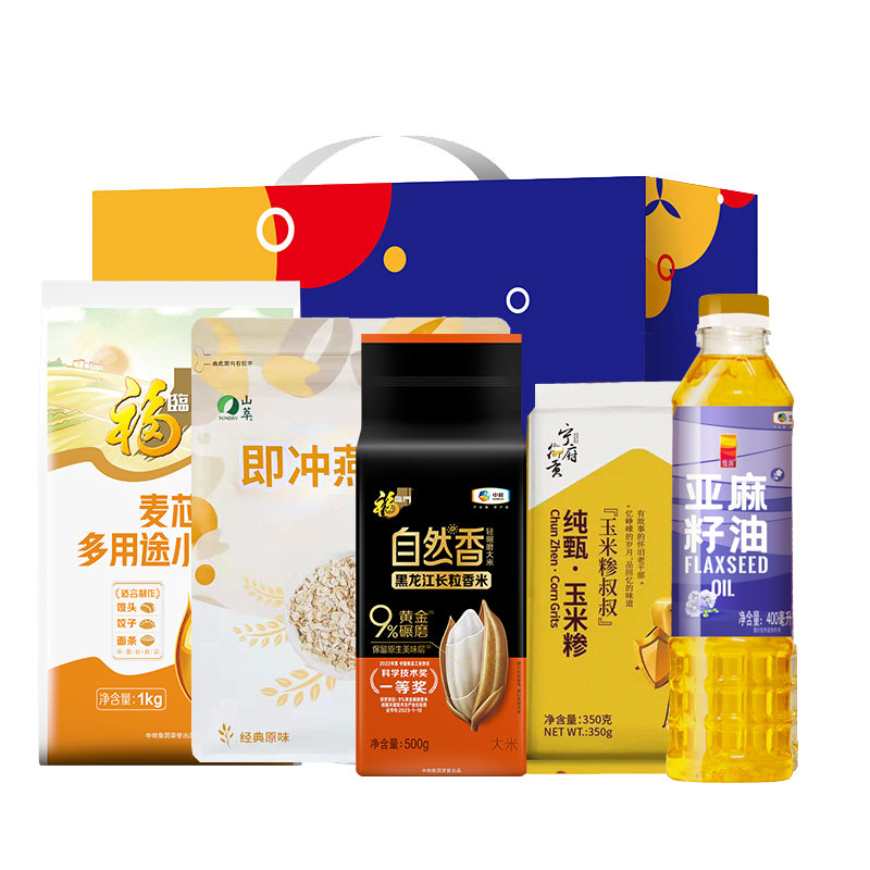 中粮甄选优质大米500g 中粮纯甄玉米糁350g 中粮山萃即食燕麦681g 中粮福临门麦芯多用途小麦粉1000g 中粮悦润亚麻籽油400ml