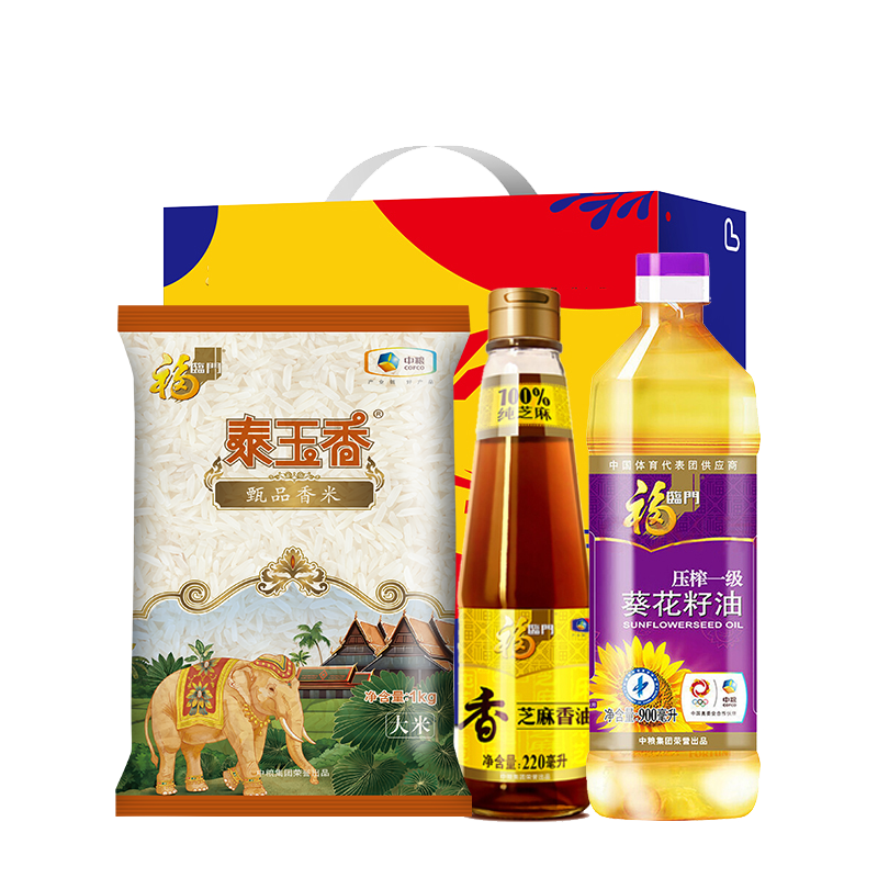 中粮福临门泰玉香甄品香米1kg 中粮福临门葵花籽油900ml 中粮福临门100%纯芝麻香油220ml