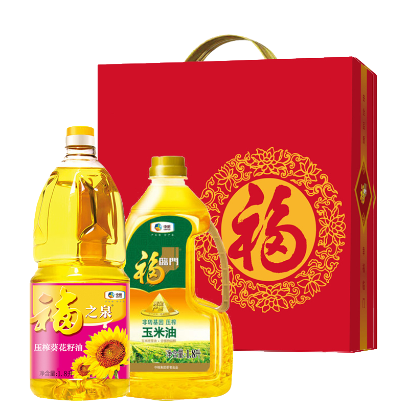 中粮·福临门压榨玉米油1.8L 中粮福之泉压榨葵花籽油1.8L