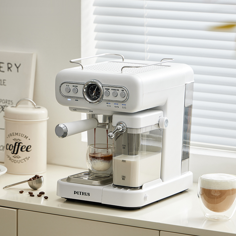 5. 可拆卸水箱和接水盘,自动打奶泡功能、顶部温杯区;