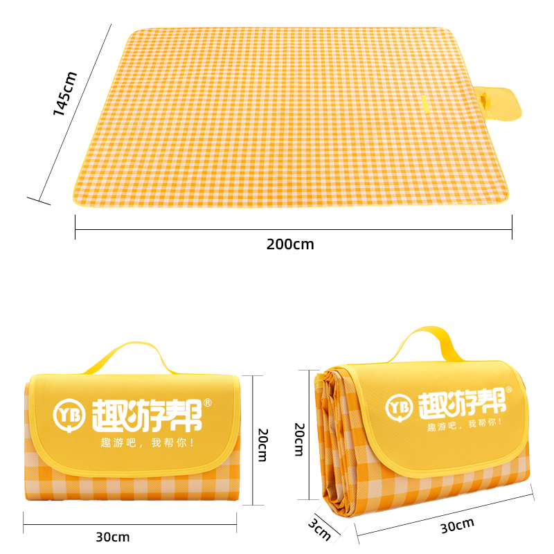 材质 600D牛津布 颜色 黄白格 尺寸 展开,145*200cm 折叠,约30*20*4cm 重量 1050g 配件 PP袋*1